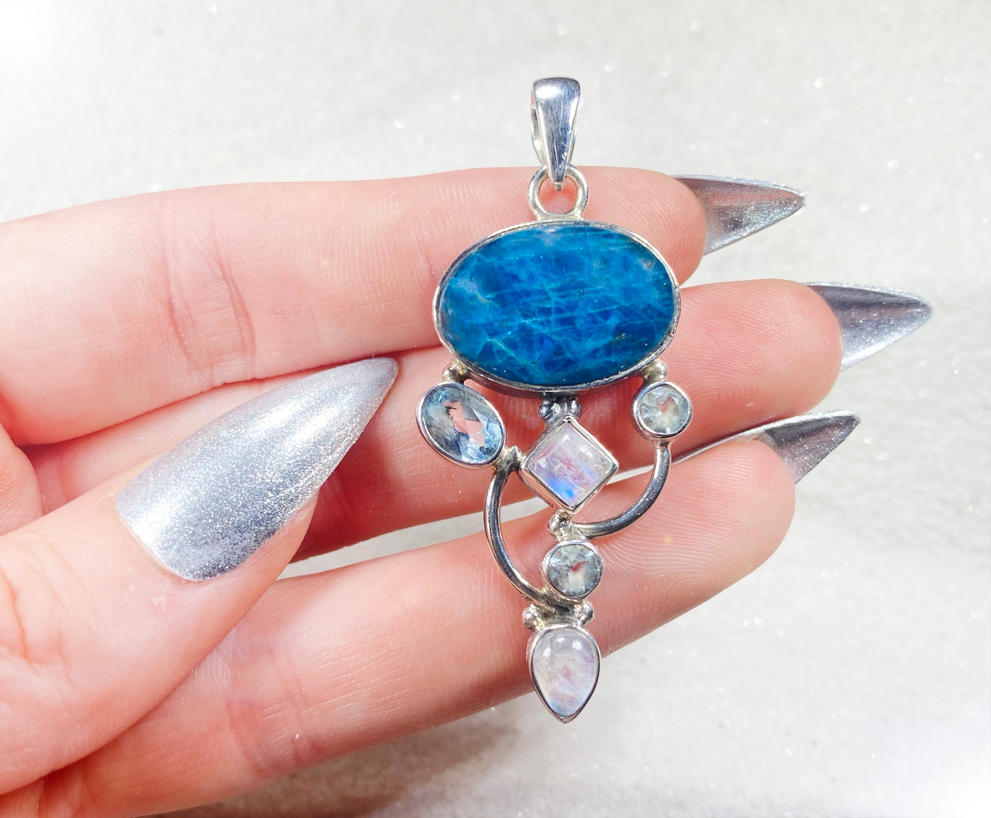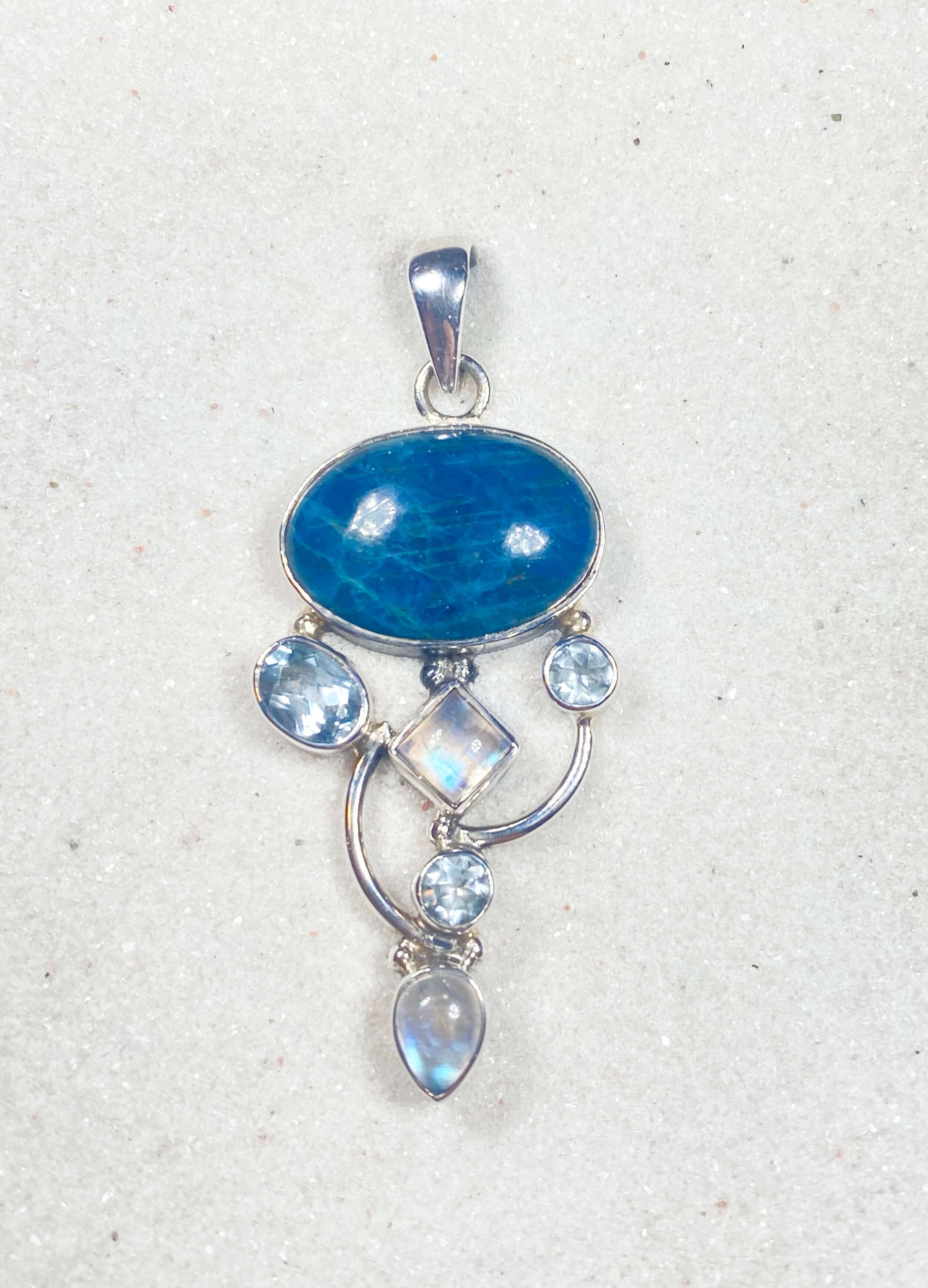 Blue Apatite w/ Moonstone & Blue Topaz Pendant
