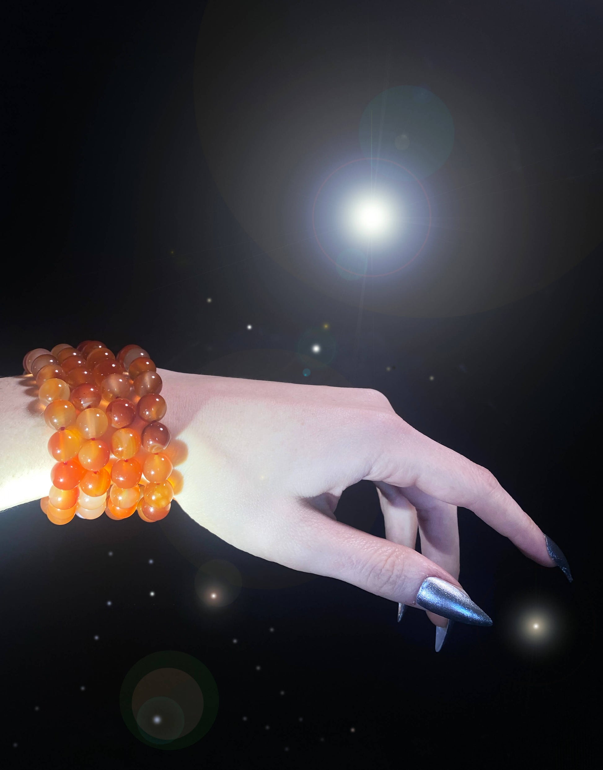 When it comes to crystals, we are all a little crazy for Carnelian. This admired multi-hued orange colored stone allures us in with its vibrant pop of fiery energy. The 10mm bead size creates an awe-inspiring audience for all guests at the arm party. They are full of confidence, creativity, and immense power. That might make them seem a little intimidating, but Carnelian is all about spreading vibrations of joy and happiness.