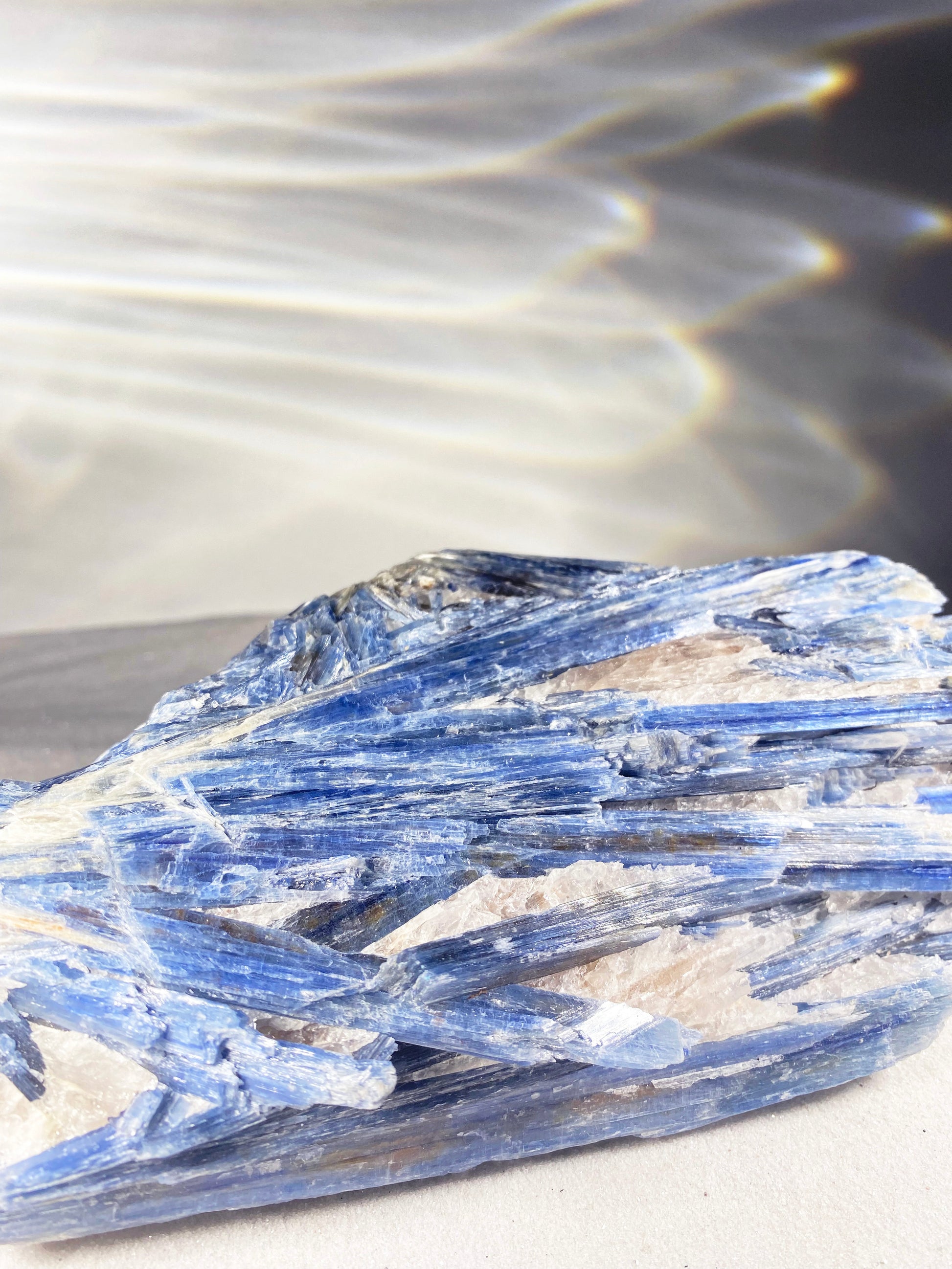 Kyanite is a high vibrational crystal that rapidly transfers energy to align the chakras, creating pathways like a universal bridge making it a crystal of connection. Ideal for opening the mind centers, enhancing telepathic and psychic abilities as well as communication on all levels. The energy of Kyanite will open the throat chakra; bring it to a balance, creating better communication and self-expression. Also known for aligning the chakras and subtle bodies, kyanite neither accumulates nor retains negative energy. It bestows tranquility and a calming effect to the whole being.