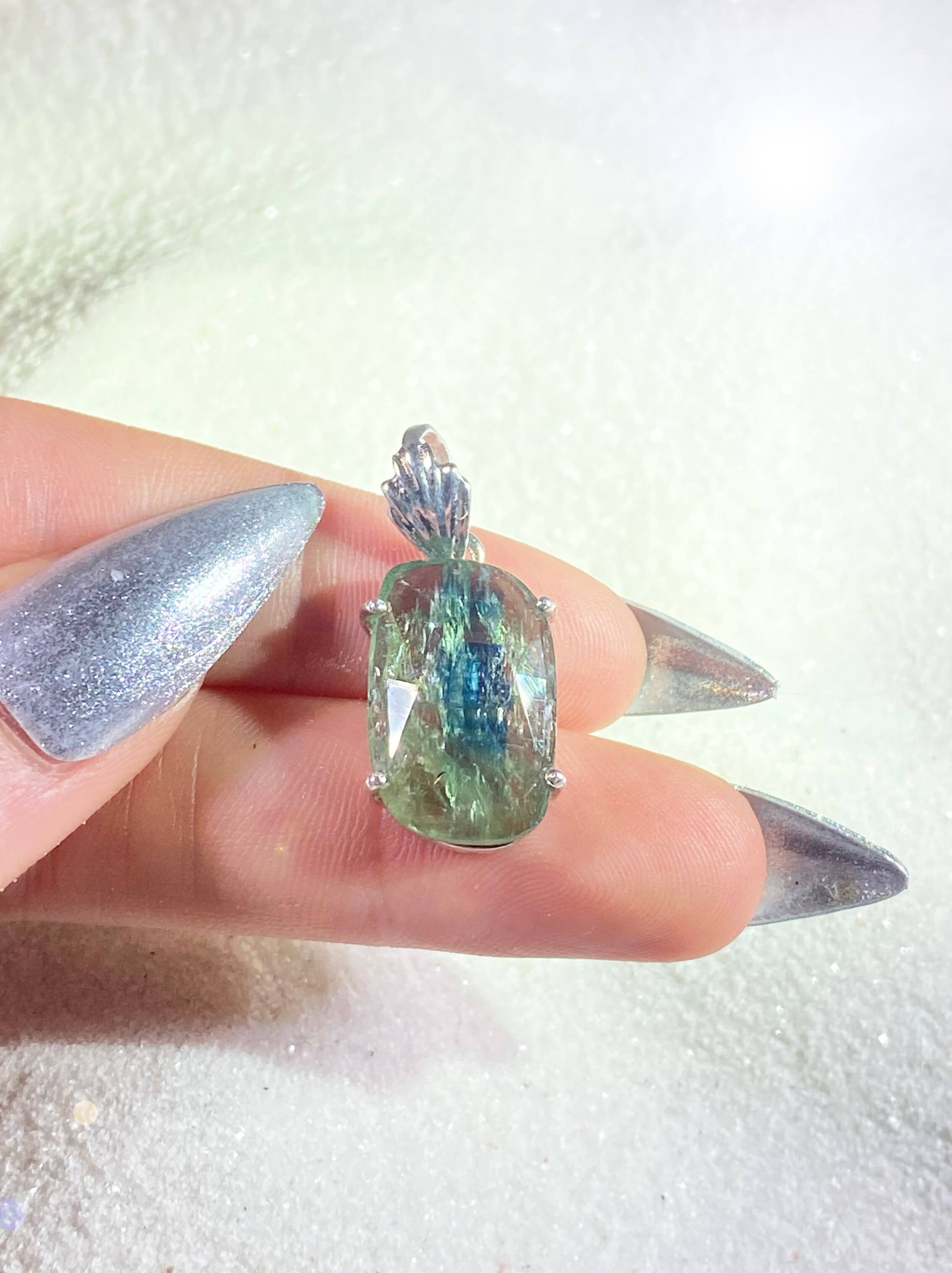 The lime green and electric blue coloring of this rare kyanite occurrence is by far one of my favorites. The gemmy quality of this magnificent stone are resemblant of a Jolly Rancher candy - and its quite delish. It's faceting finishing adds an extra wonderful touch, allowing the light to glimmer off its surface. Kyanite is a powerful healing stone, and when the green and blue varieties are combined, you have yourself a high vibrational shield.