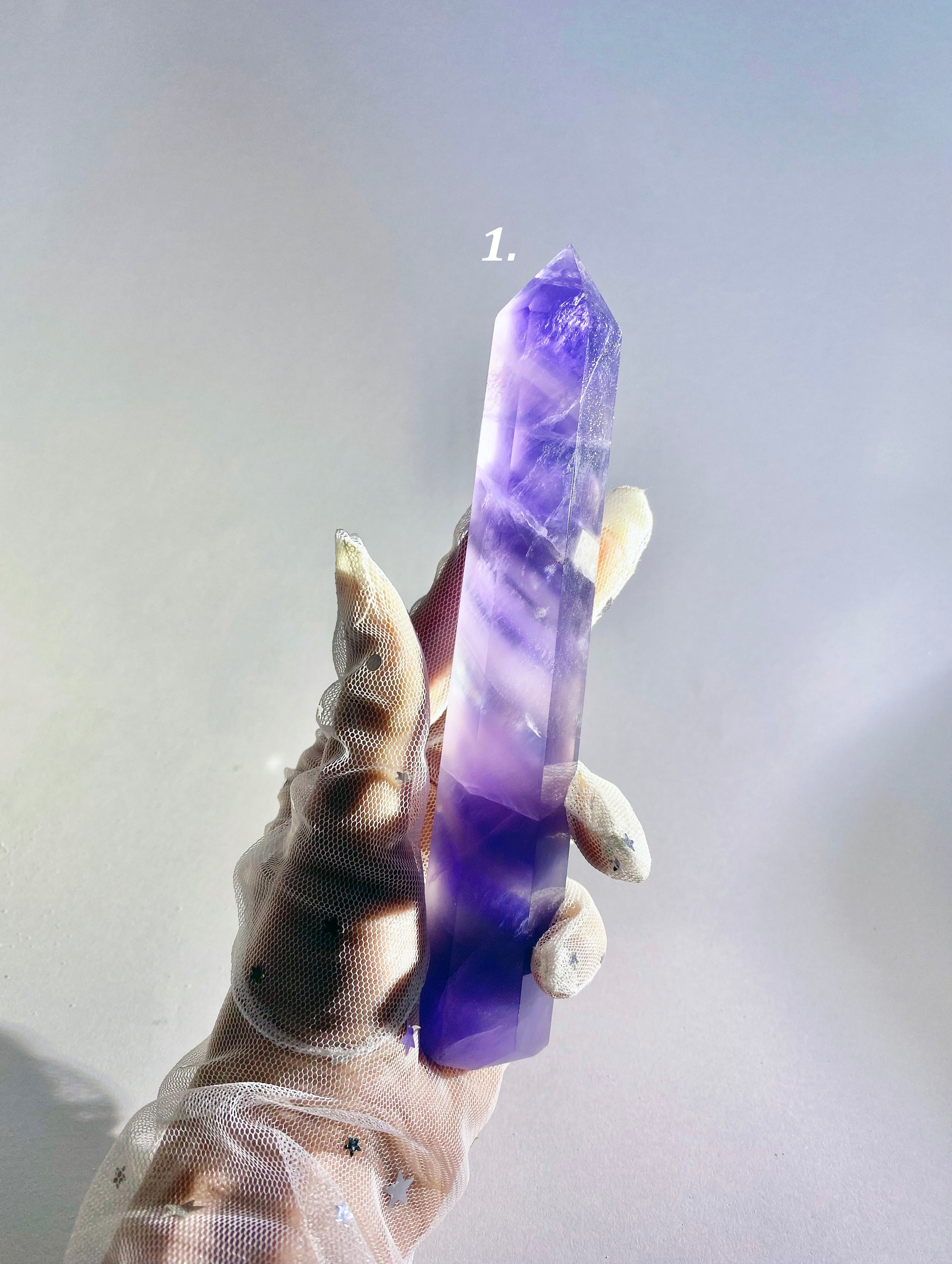 - Purple Fluorite is the perfect “Dream Crystal,” defending one from evil spirits and bad dreams. It radiates a wonderful energy throughout the light body relieving stress, spiritual discomfort, and physical blockages. Metaphysically Fluorite is used to achieve the highest state of mental clarity and achievement.