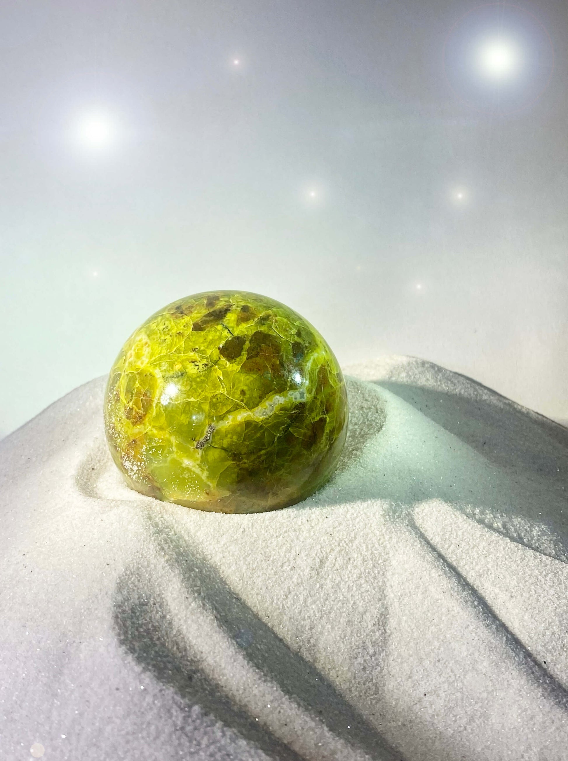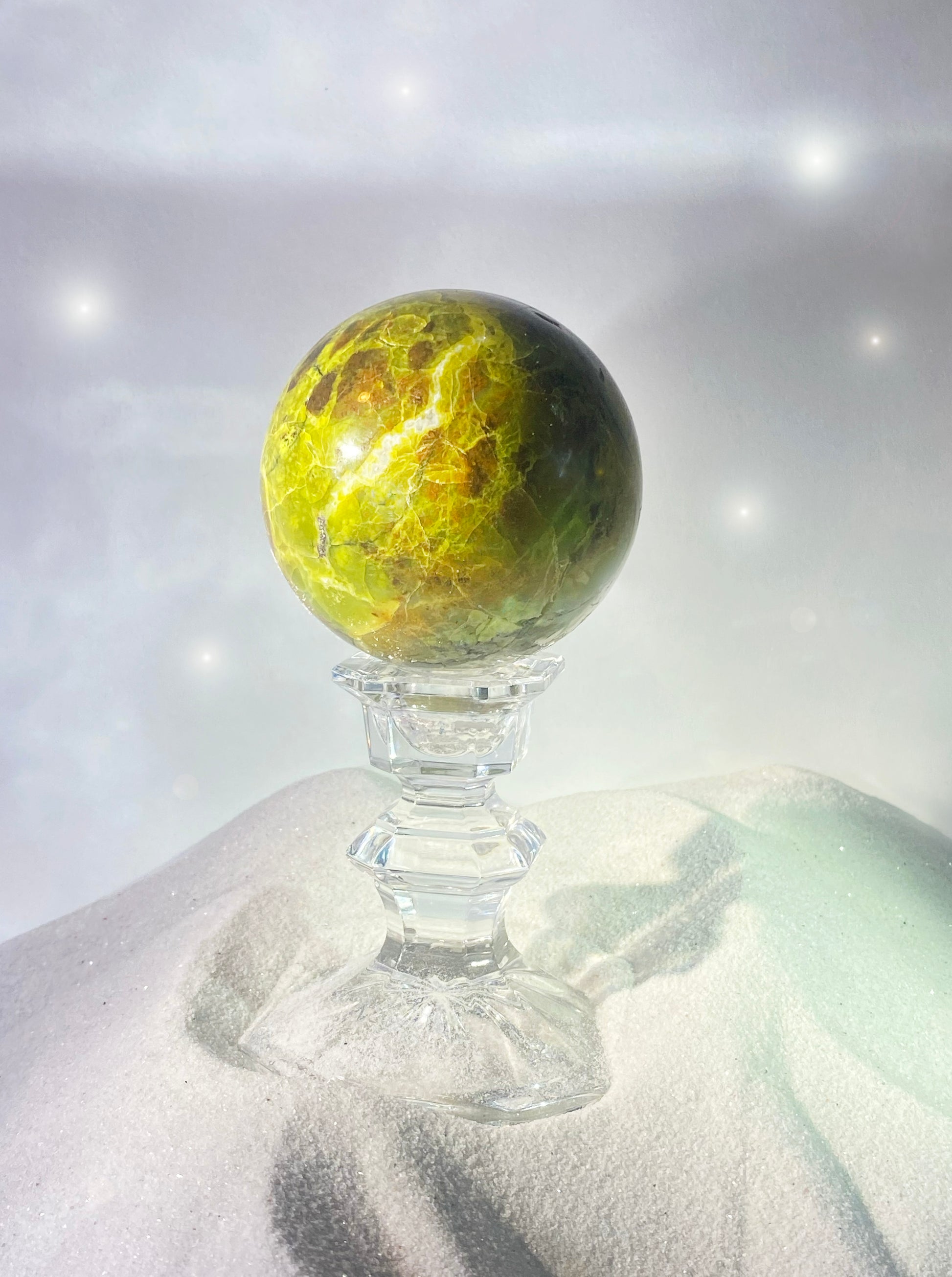 This electrifying large Green Opal sphere is invigorating and fresh both to look at and energetically. If you want to work with a wonderful heart chakra stone that will encourage growth and strength this beautiful sphere will make a wonderful addition to your home or spiritual practice.