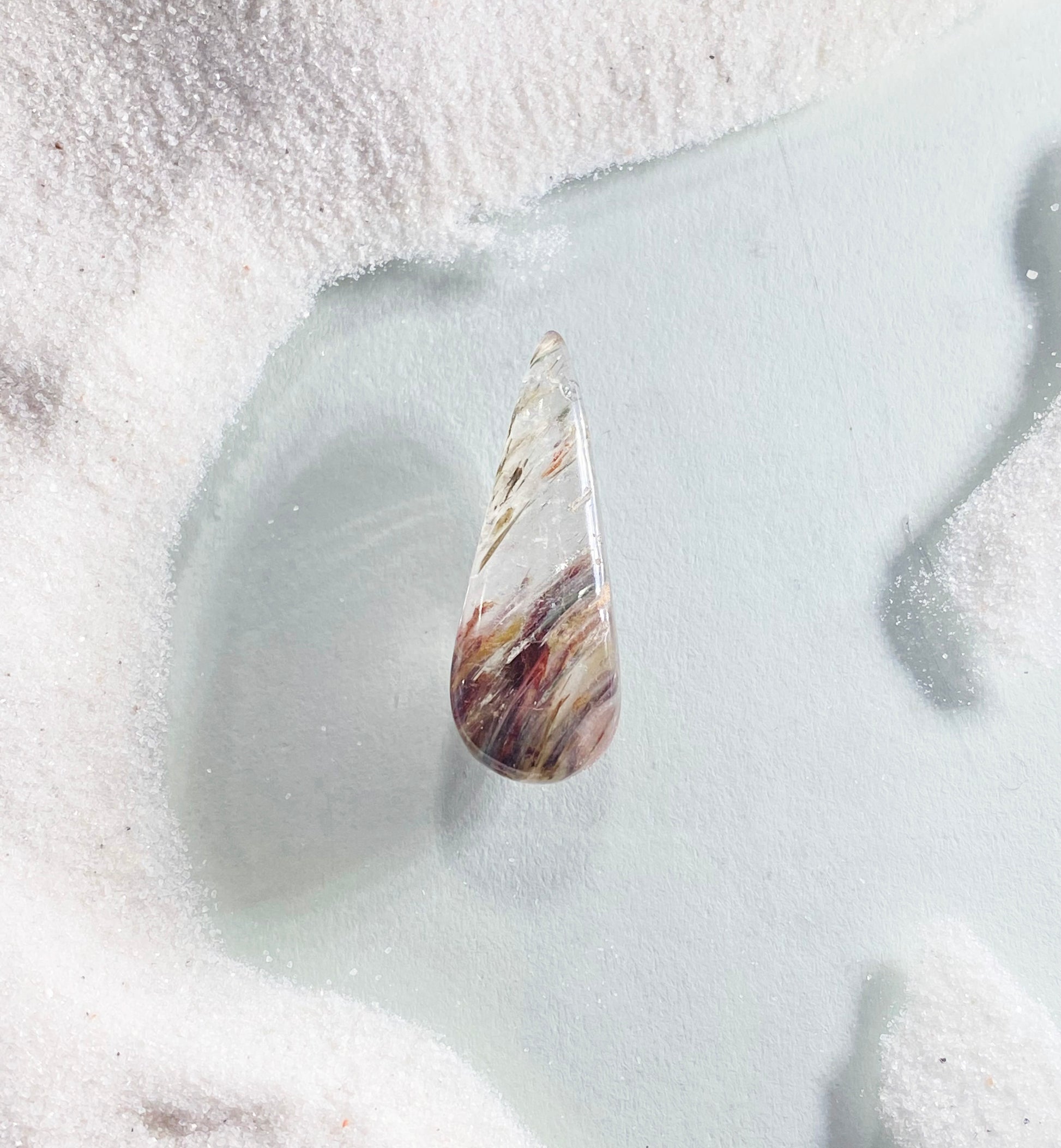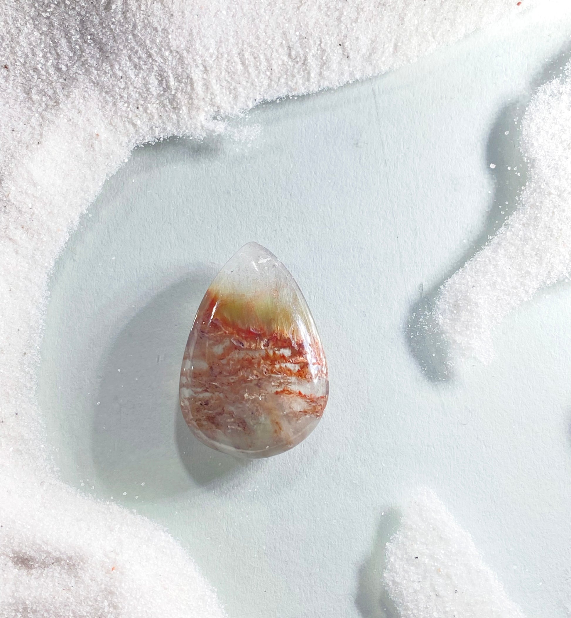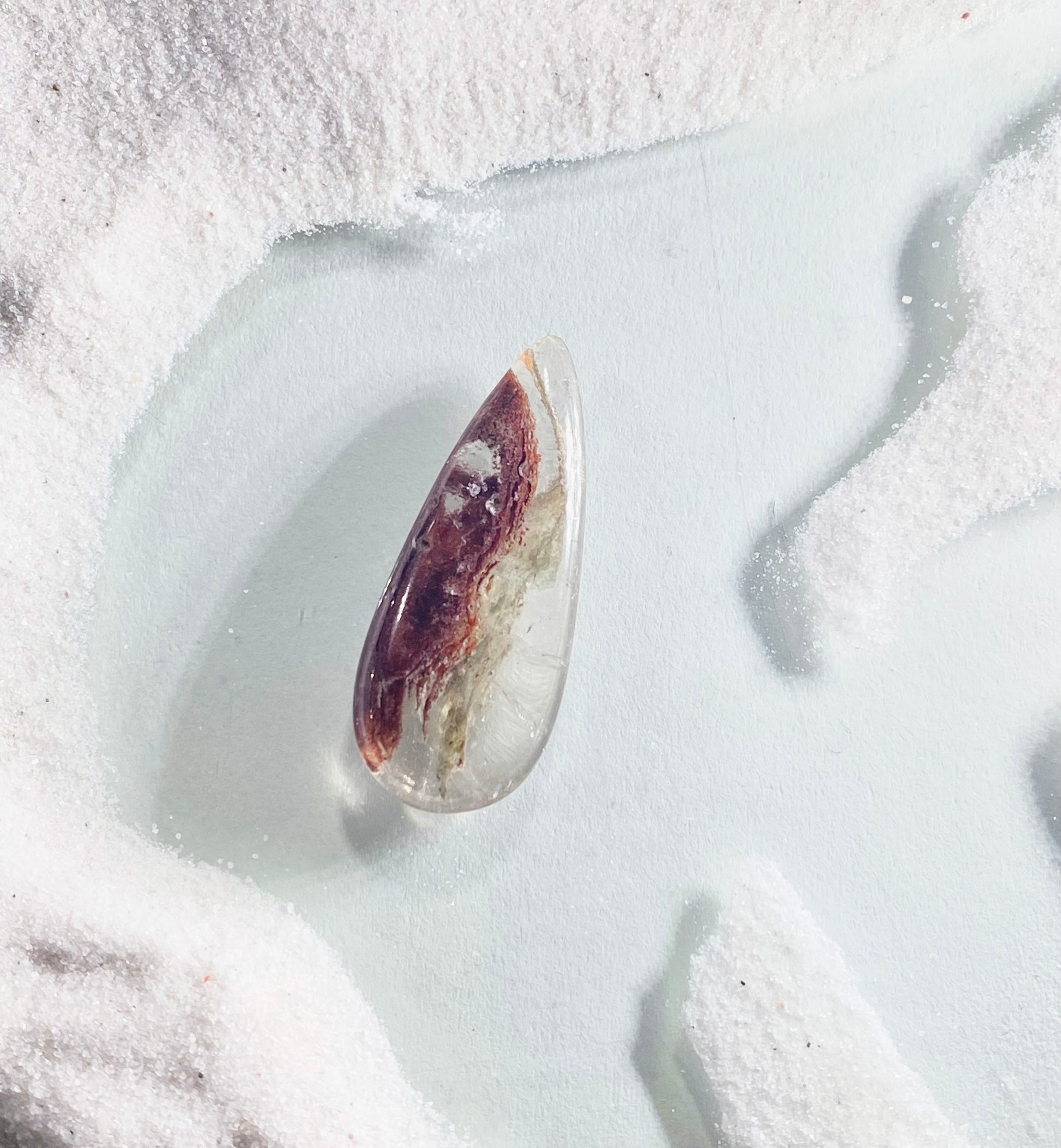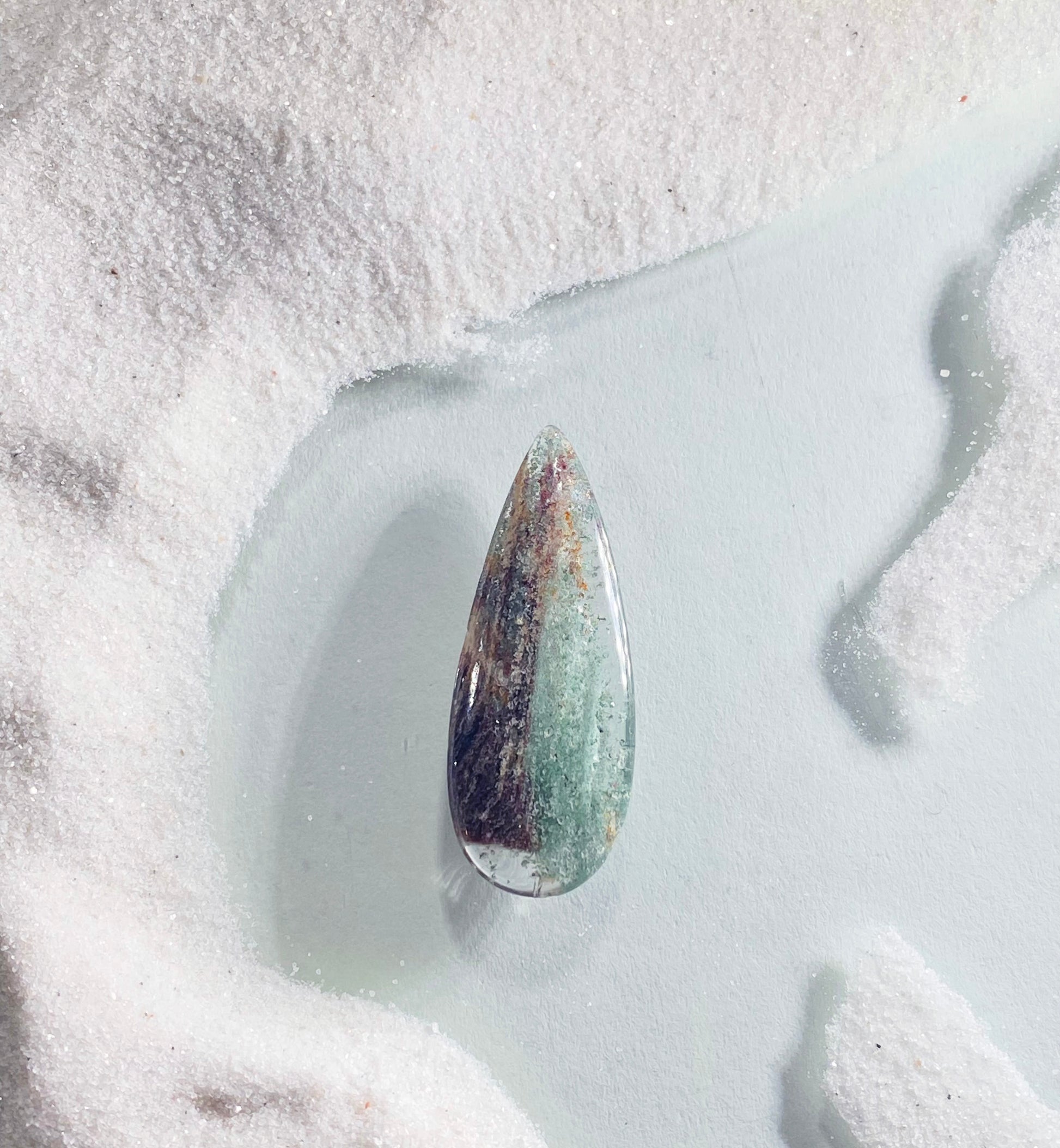 These Lodolite cabochons instill those same initial feelings within me when I gaze into them. They are shaped into tear-drops, however, with the use of your imagination, they are colorful trees, gnomes, or mini gardens. Each is entirely unique with inclusions containing different minerals such as Hematite, Chlorite, Feldspar and so on. These are ideal for those into jewelry making and also make wonder additions to your medicine bag.
