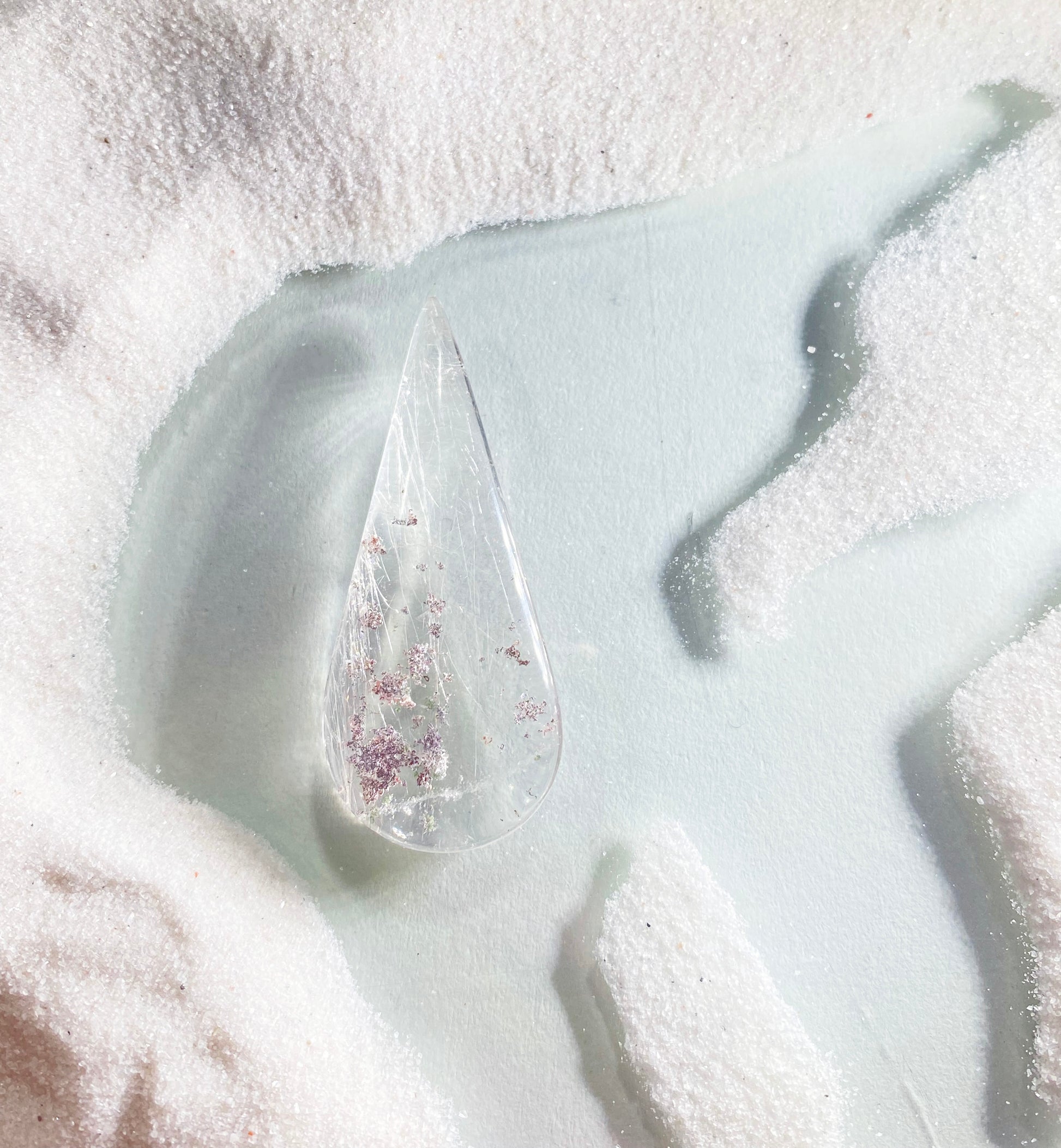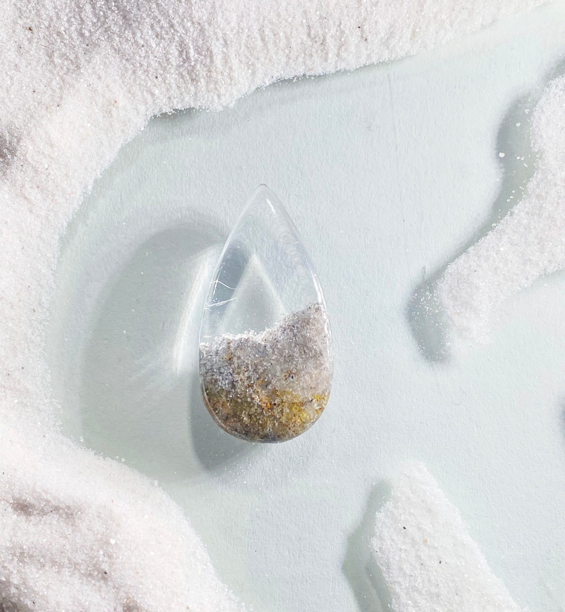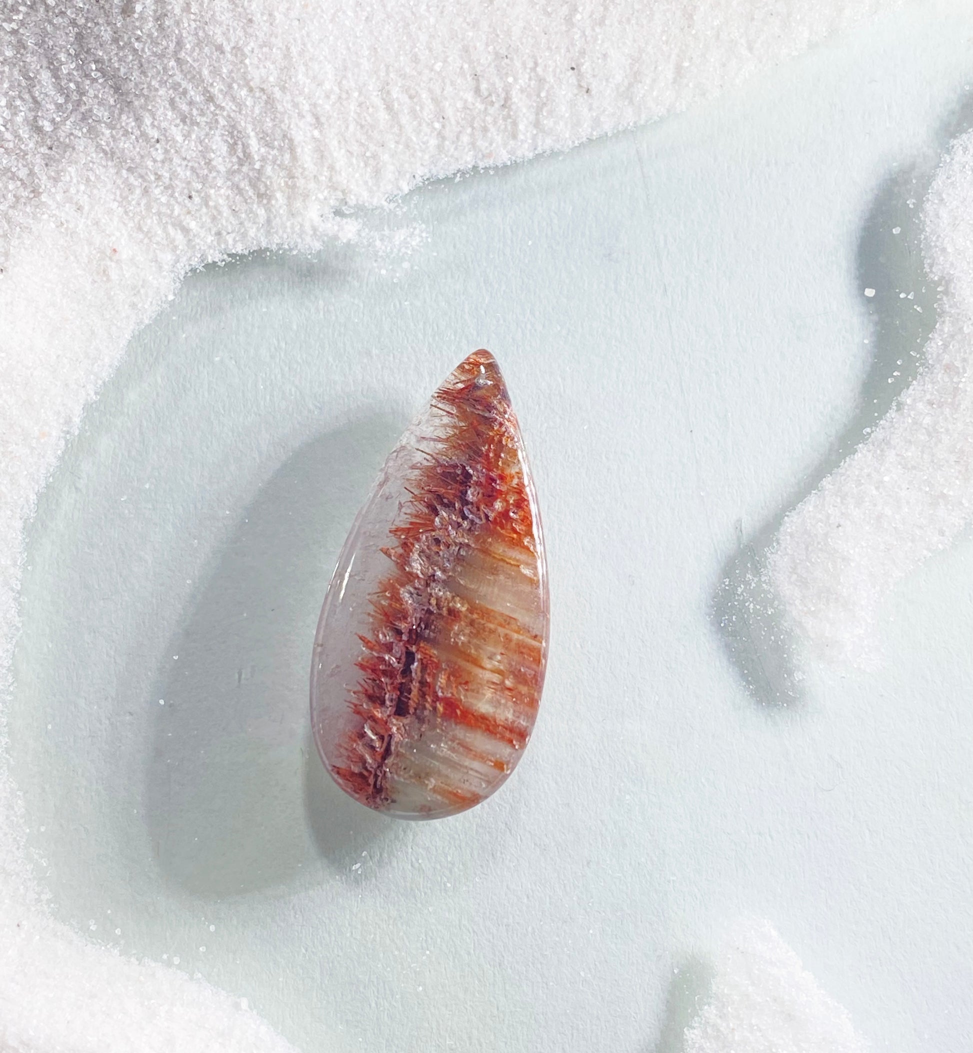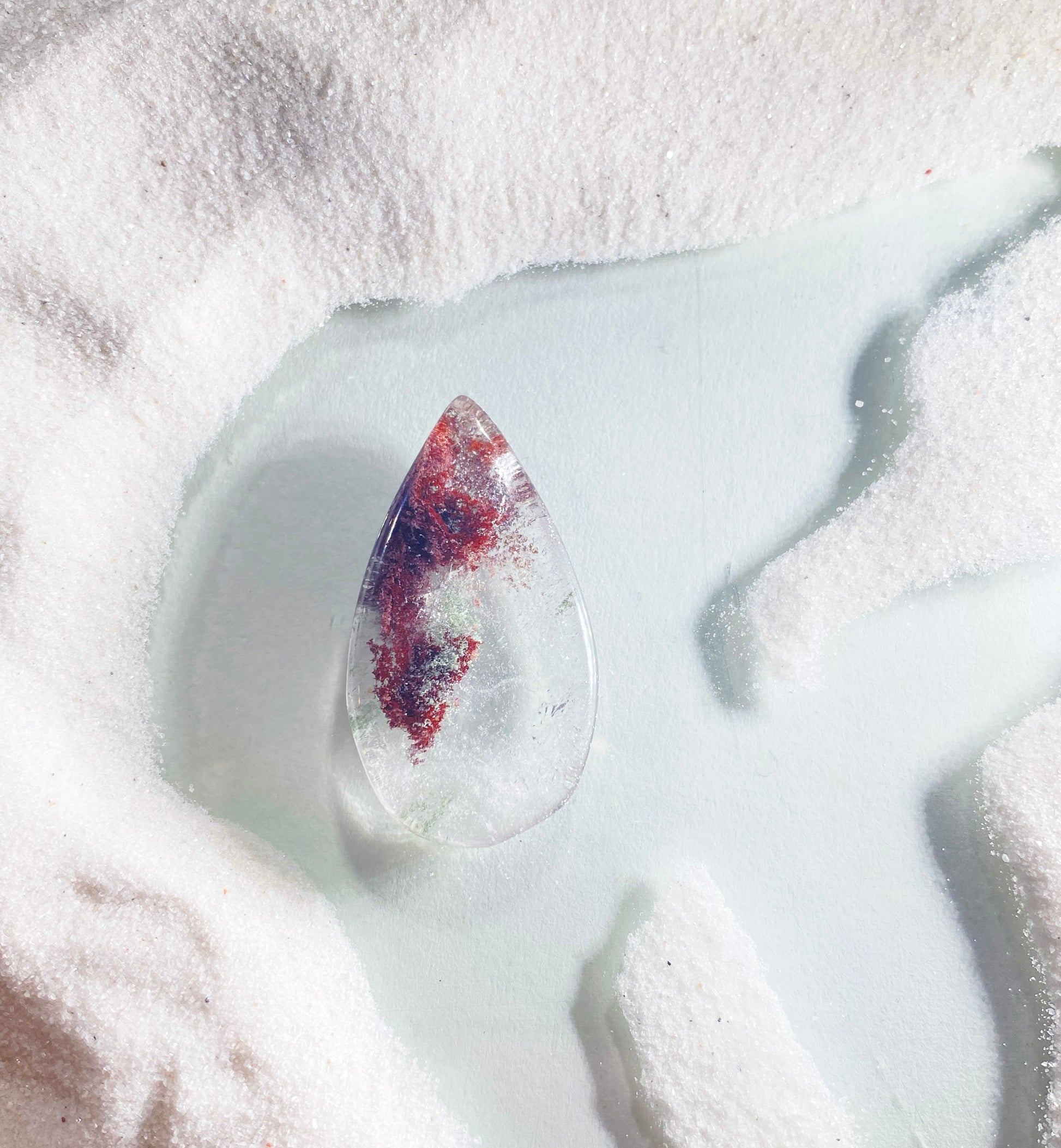 These Lodolite cabochons instill those same initial feelings within me when I gaze into them. They are shaped into tear-drops, however, with the use of your imagination, they are colorful trees, gnomes, or mini gardens. Each is entirely unique with inclusions containing different minerals such as Hematite, Chlorite, Feldspar and so on. These are ideal for those into jewelry making and also make wonder additions to your medicine bag.