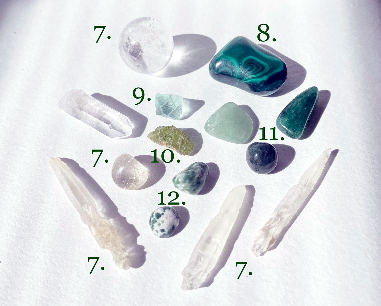 - Green Fluorite brings growth, abundance and nature energies to the properties of Fluorite. It clears negative energy from any environment and brings cleansing, renewal, and a spring-like freshness to the chakras. Harmonizing the mind with the heart, Green Fluorite helps make one’s thoughts, words and actions aligned with their true purpose.