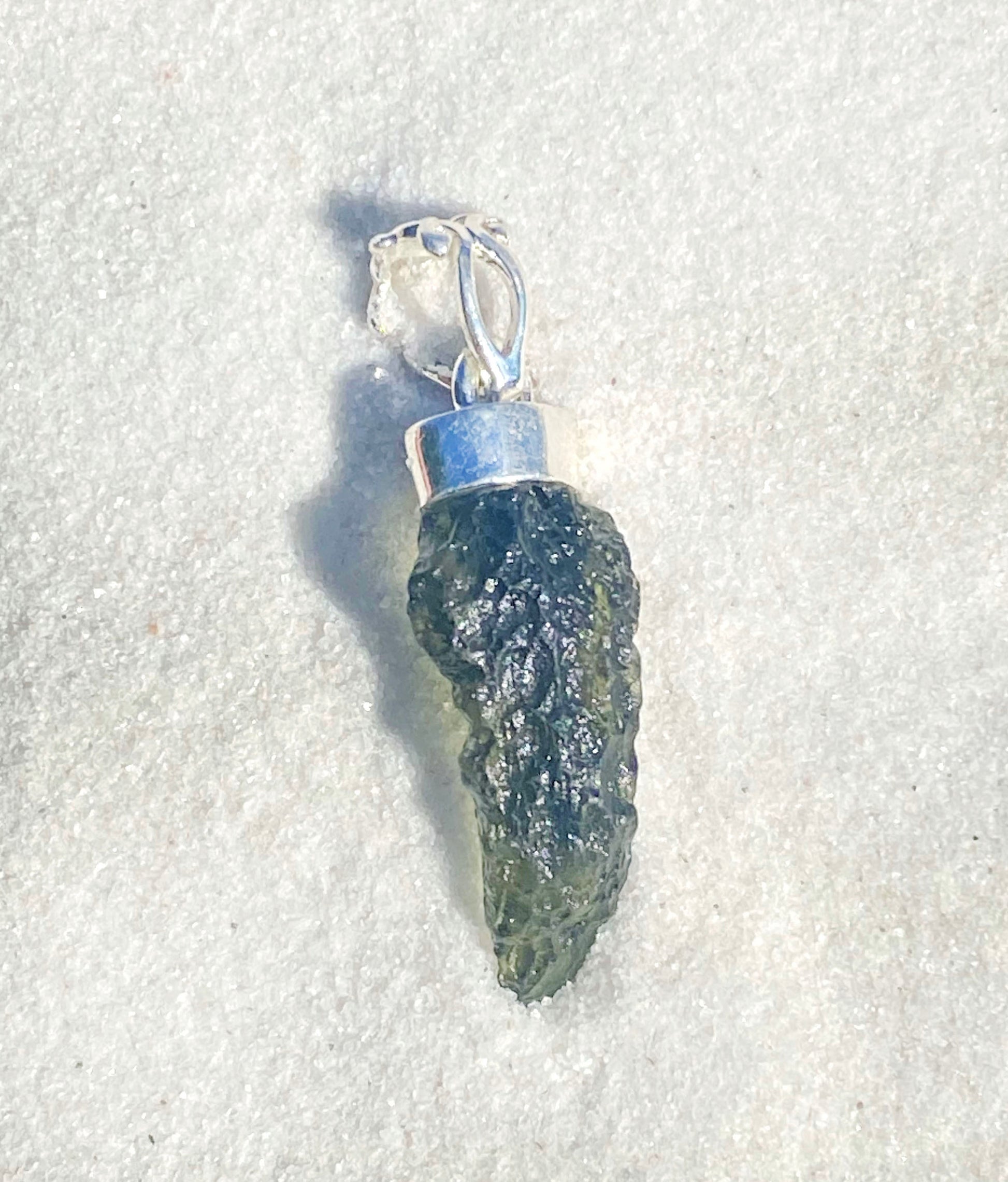 Naturally Pointed Rough Moldavite Pendant