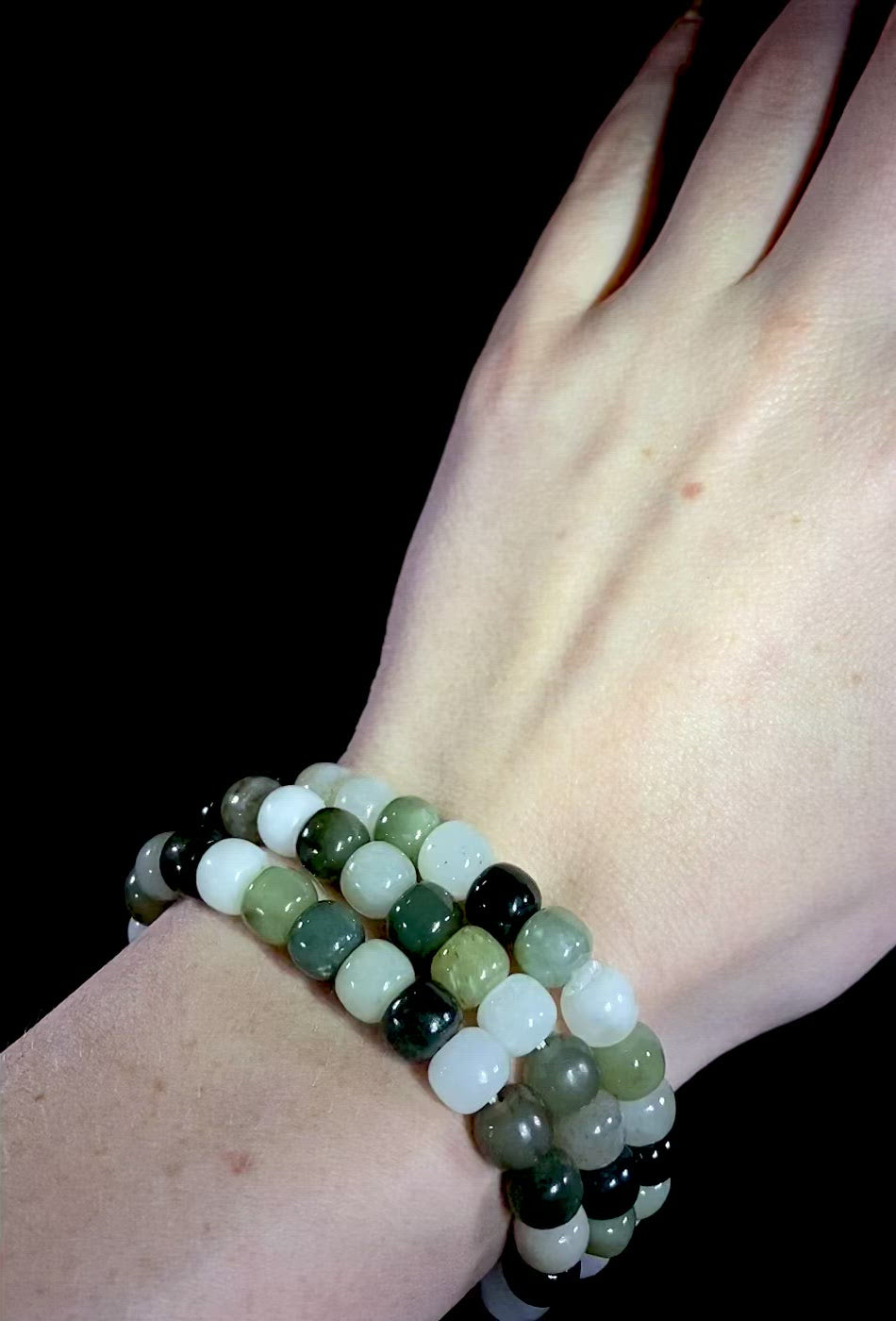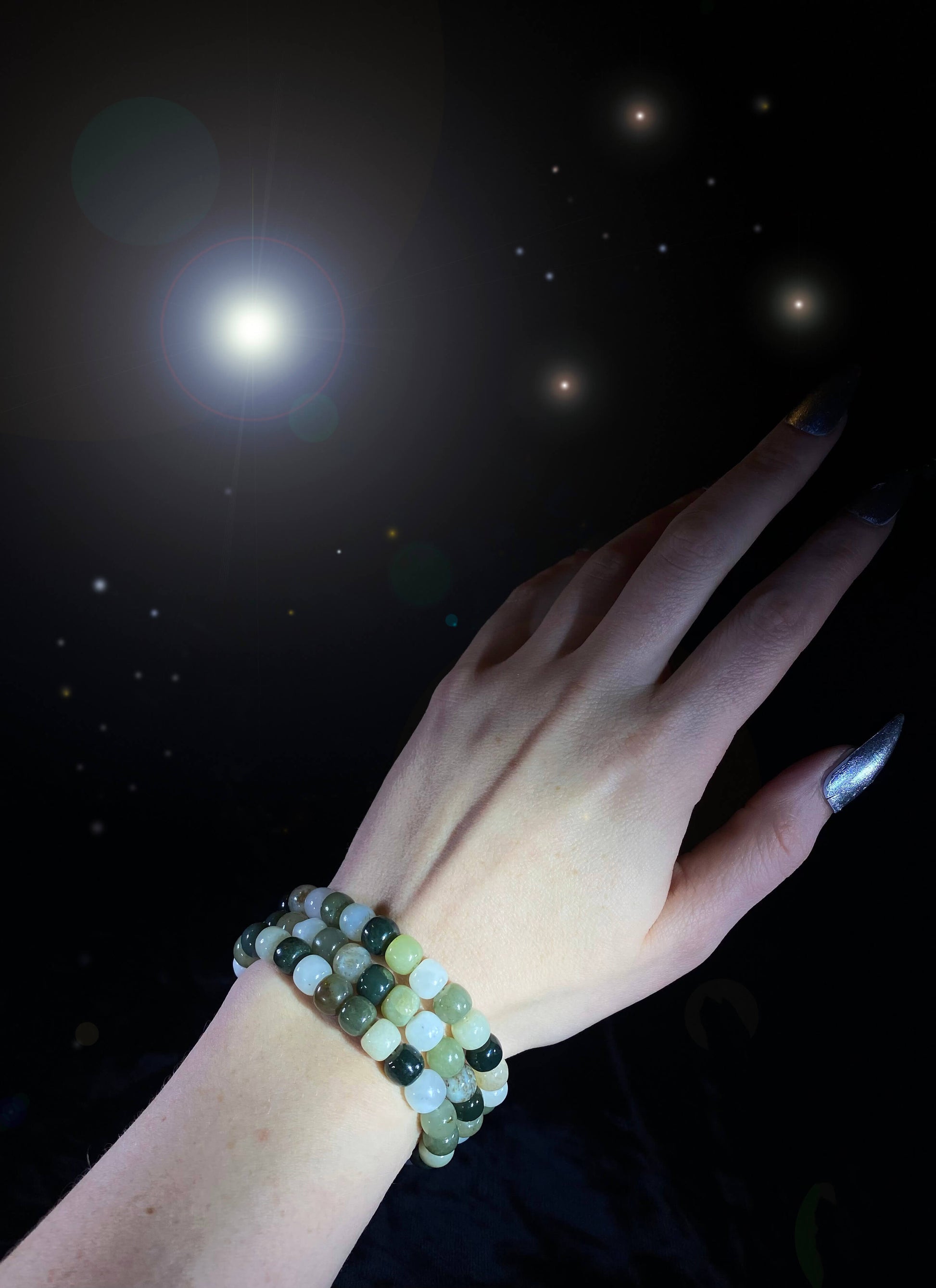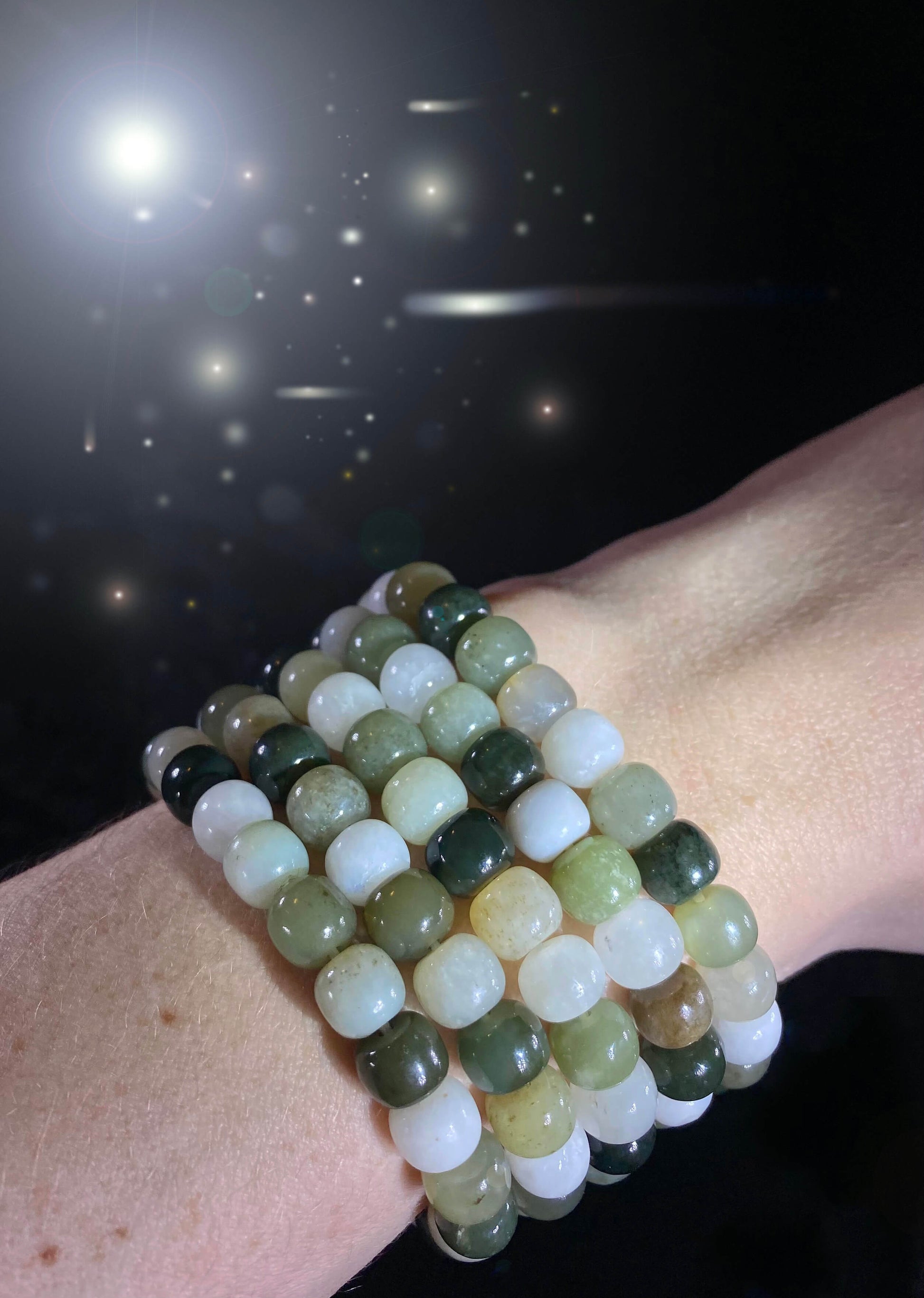 Everyone like's someone whose extremely popular for all the right reasons. You know, they are down-to-earth and have a timeless charm about their character? Well, these mixed colored Jade bracelets have all the right energy and haven't let being admired for centuries go to their head. The wide rondelle shape gives them a classic, relatable feel while being a little less high strung with multi shades of green and white Nephrite Jade.