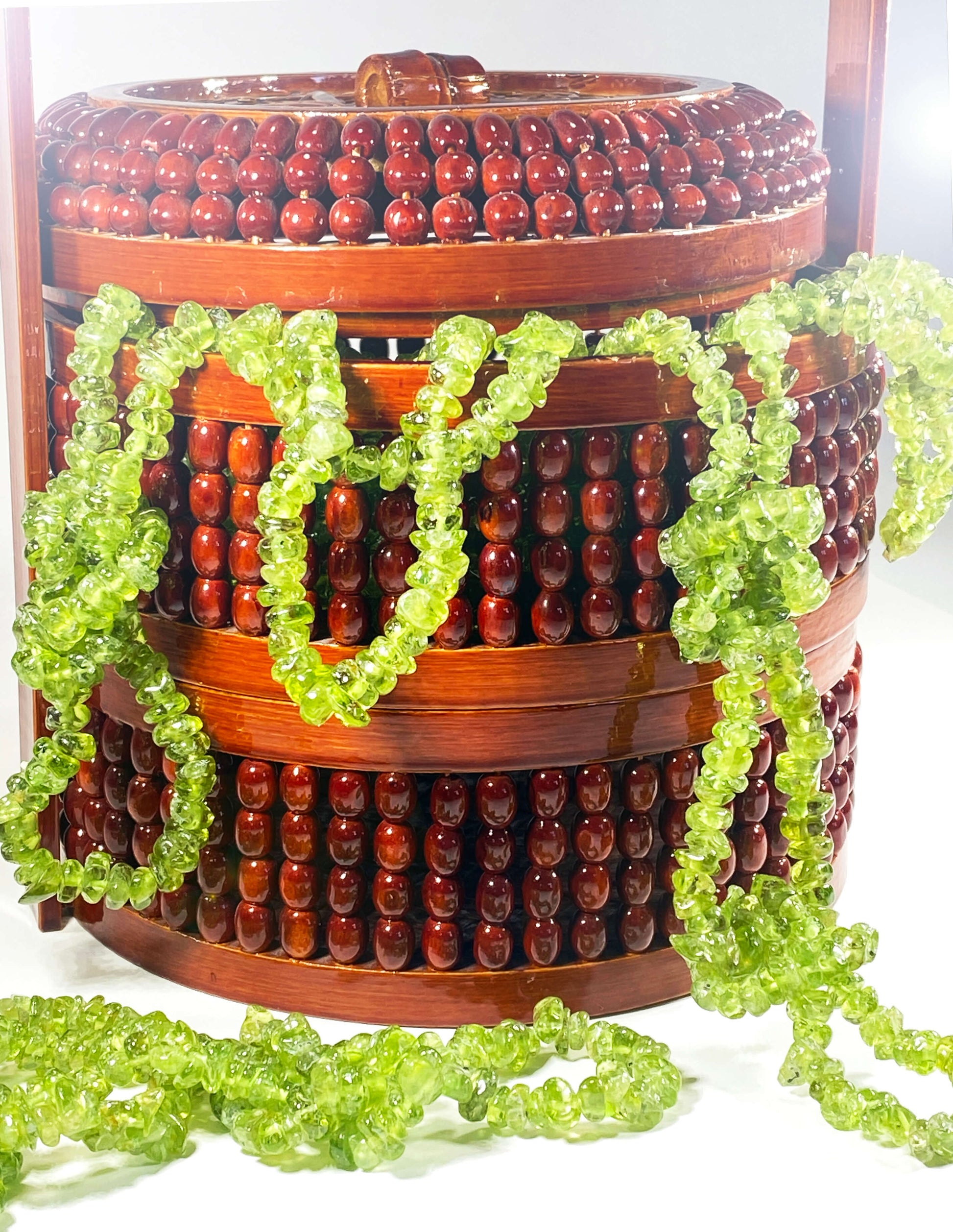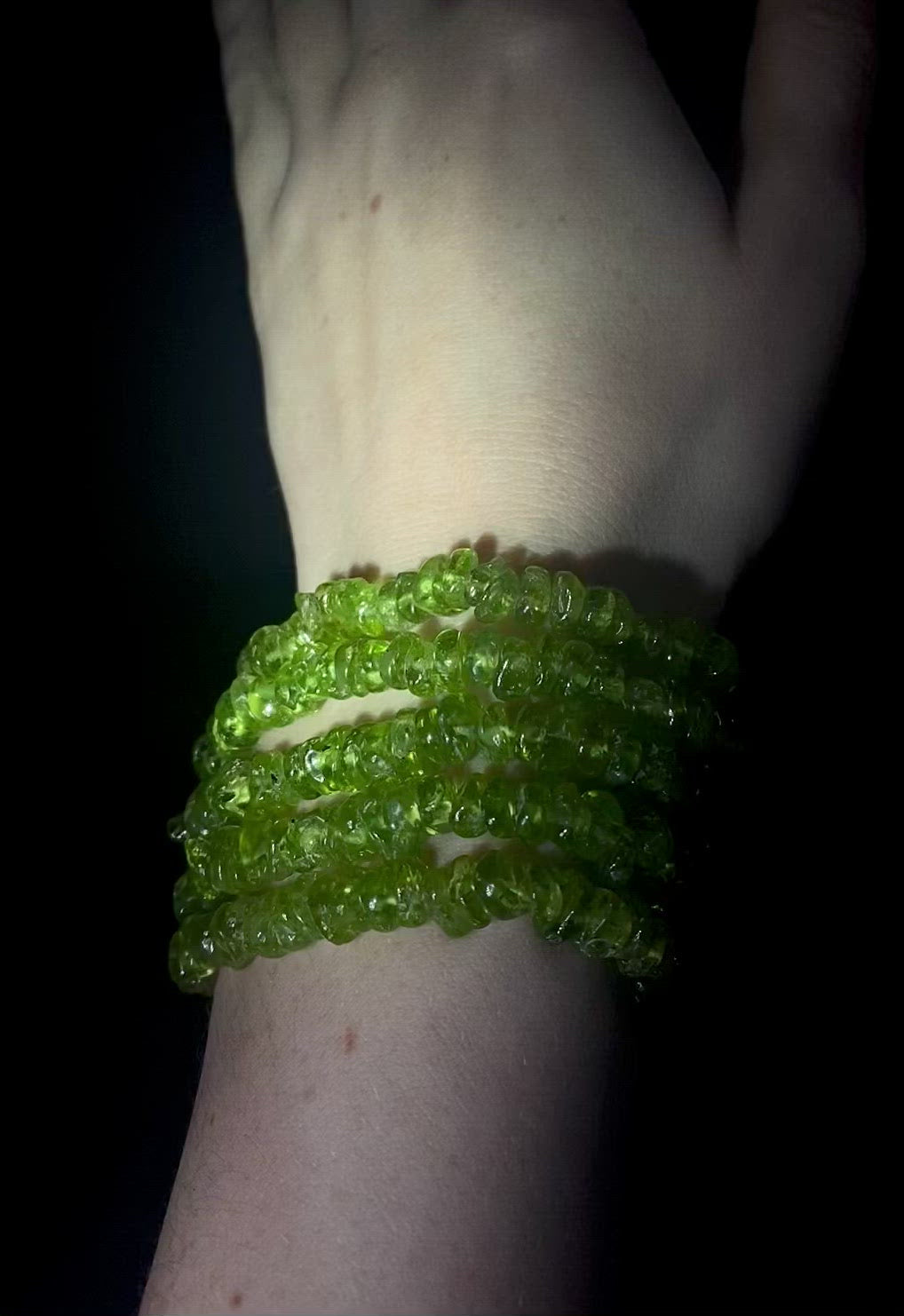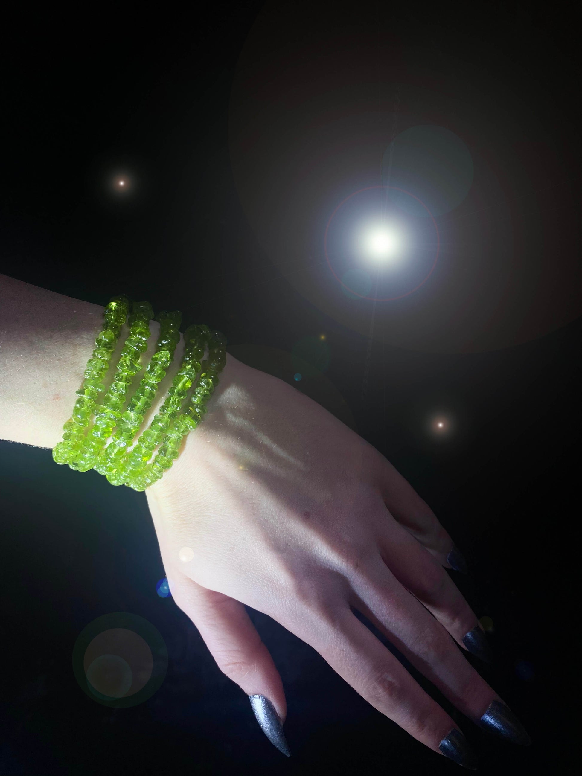 Peridot also known as Olivine, is a brilliant lime green colored stone with a pivotal force of energy. Did you know that there are only two minerals that grow on the Earth’s mantle, while the others predominantly grow on the Earth’s crust? Well, the first is Diamond and her soulmate is indeed, Peridot. These Peridot chip bracelets are in their won lane when it comes to bracelets of this style. The super gemmy and high quality make these beauties a glowing addition to the arm party.