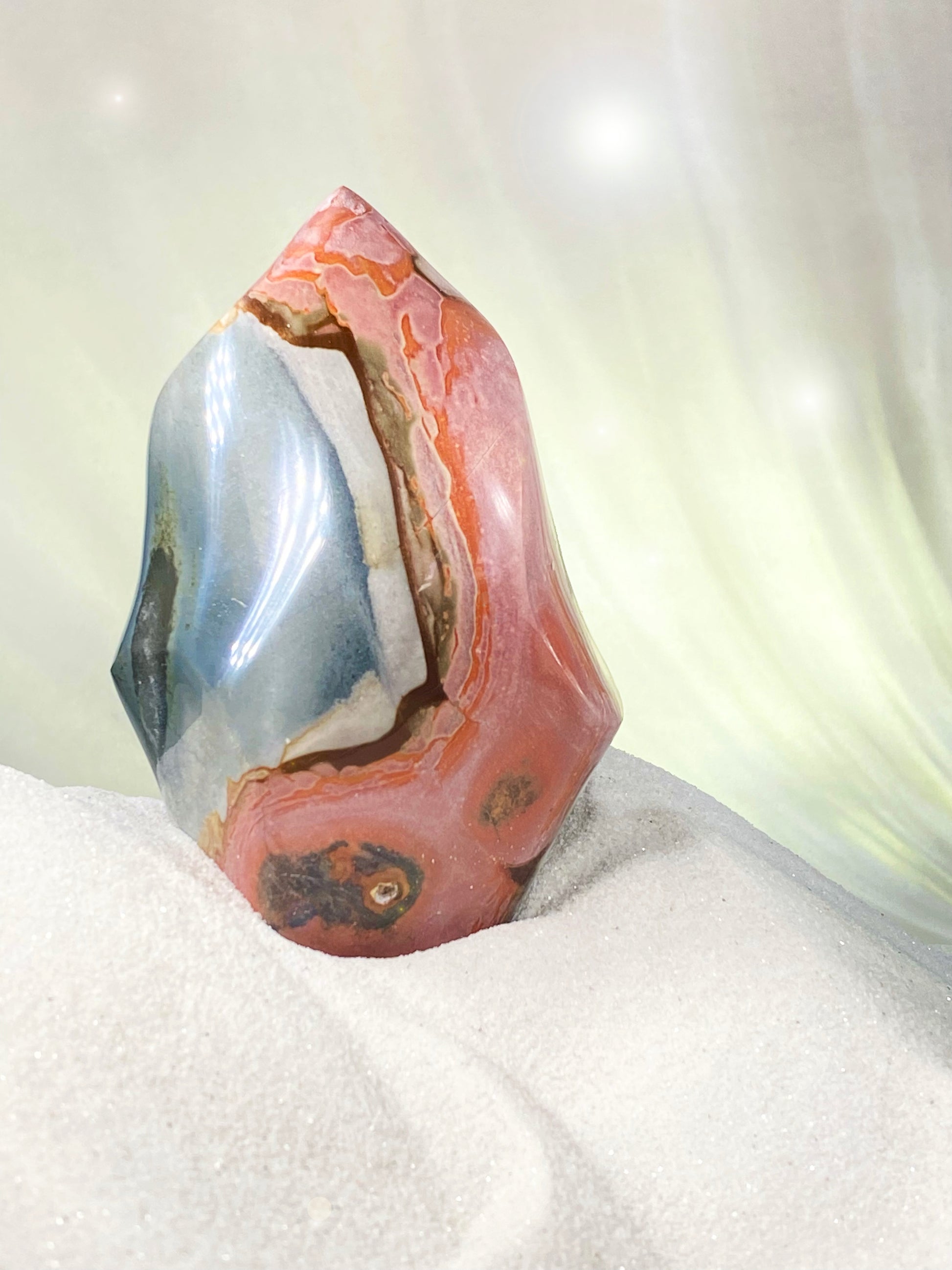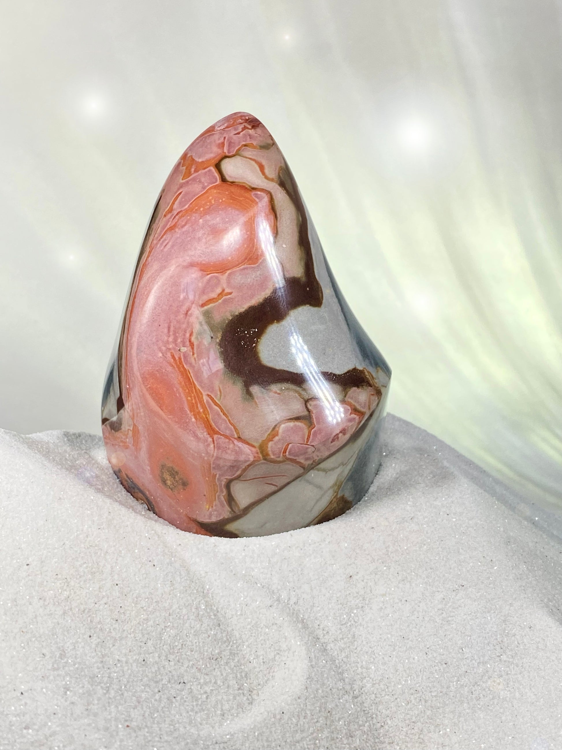 Polychrome Jasper is a true earthly stone with a connection to fire. It is the perfect stone to shed a bright light on your creative and passionate side. It brings potent energy of grounding, balance, and a strong sense of equilibrium. This Jasper reflects the magic that comes with the shifting sands of time. It inspires and encourages positive change and helps you live your true destiny.