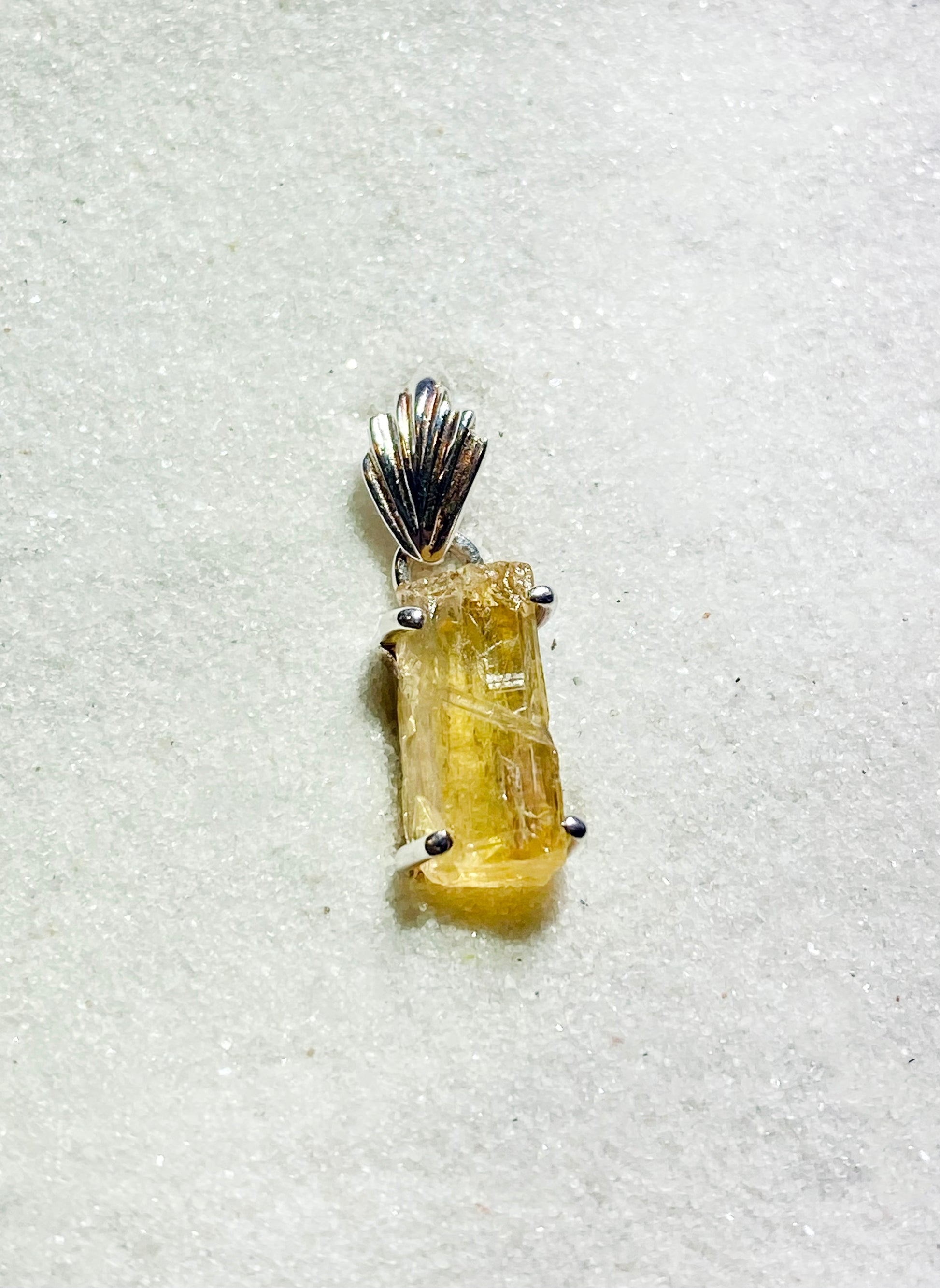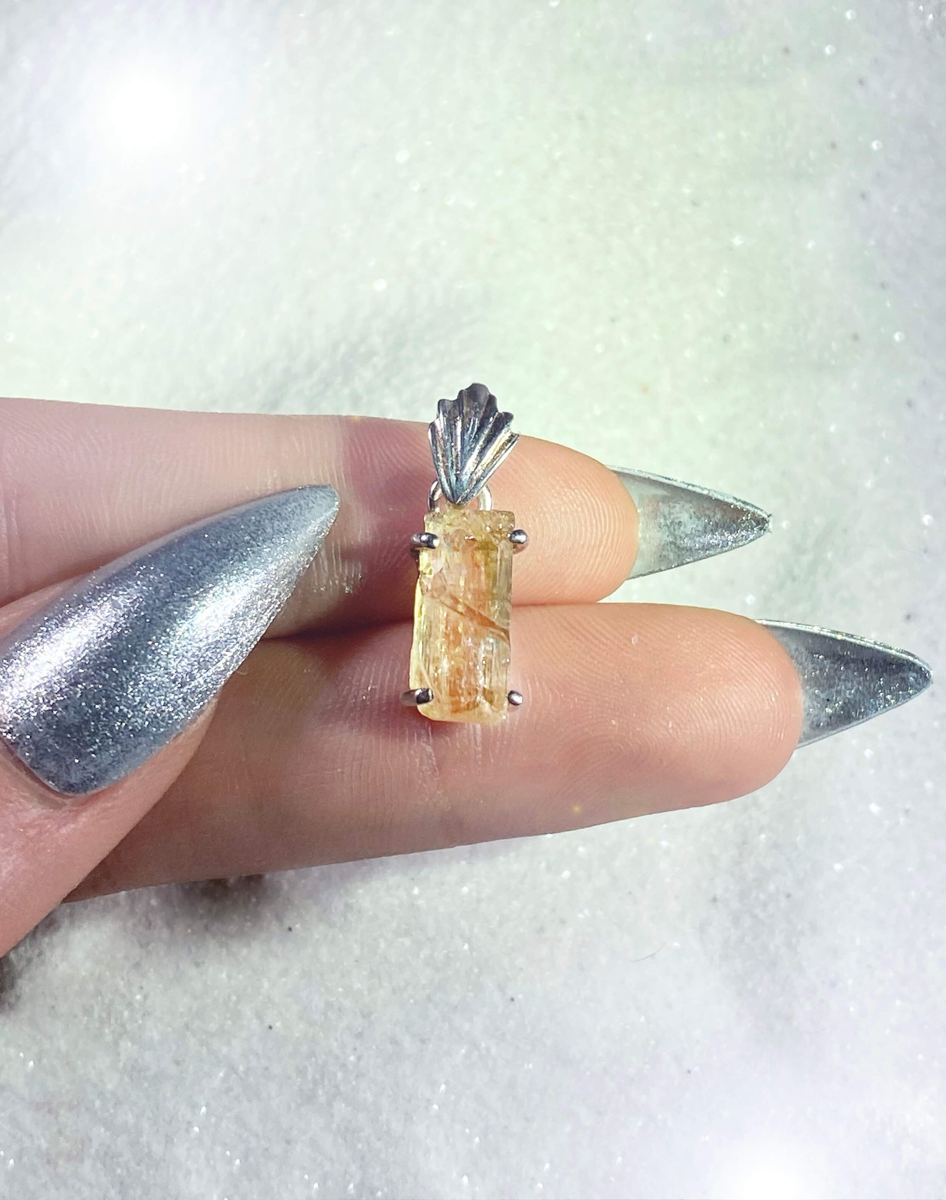Imperial Topaz invokes a refreshing and uplifting feeling like liquid gold. Its color is reminiscent of both the suns warm and life-giving rays and the plentiful and delicious honey made by bees. This joyful stone found in this pendant is in its natural raw formation. There is something about a crystal that has gone unaltered that always feels extra potent to wear.