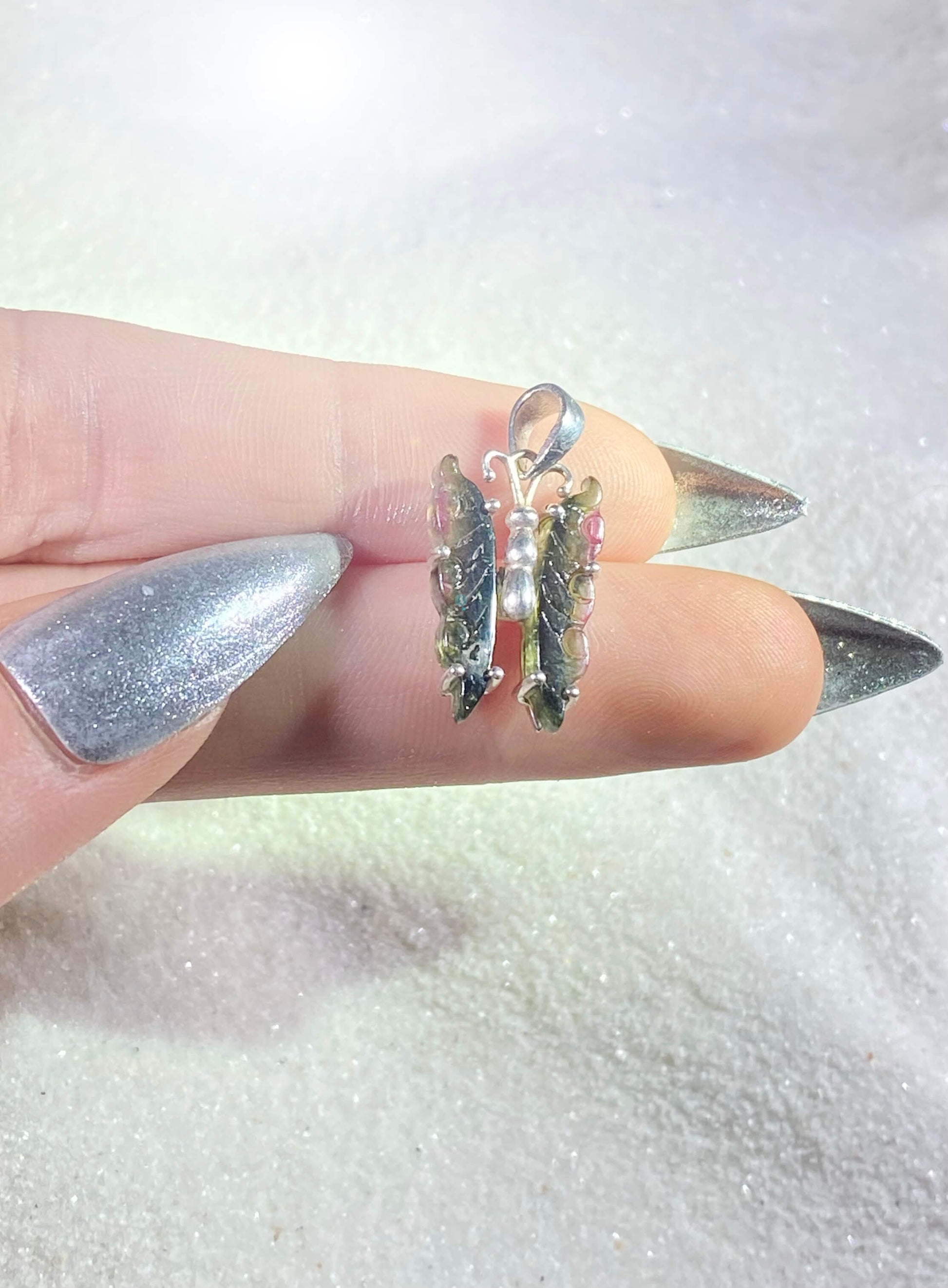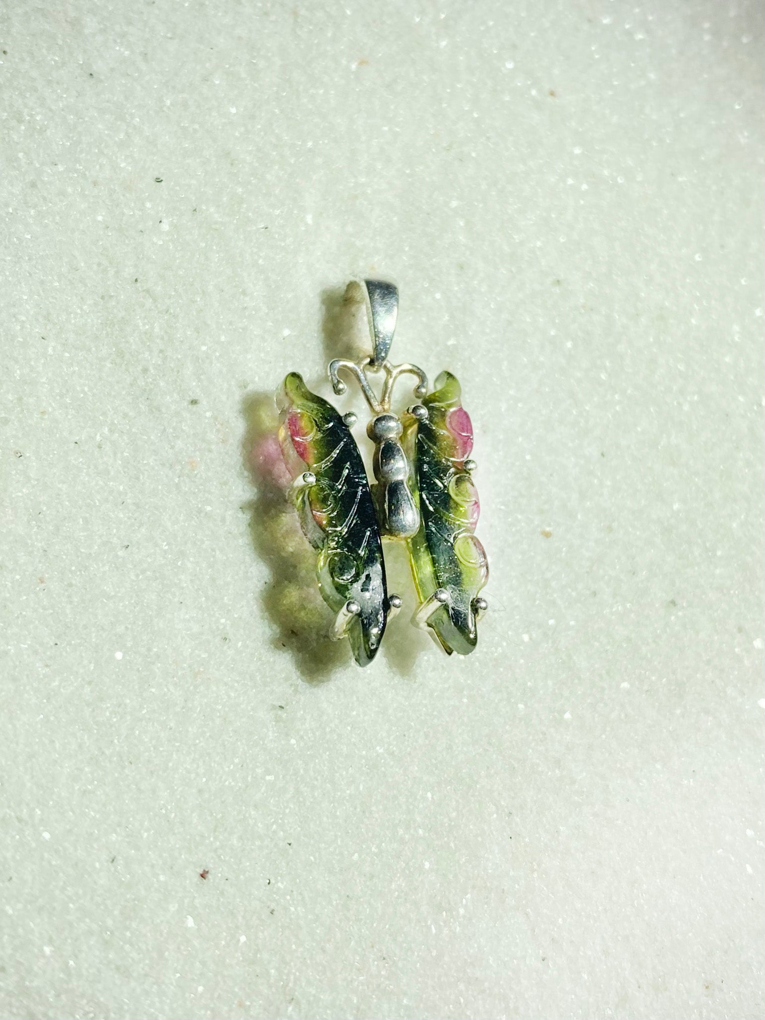 Watermelon Tourmaline is a special form of tourmaline that is characterized by its pink center and green exterior resembling a watermelon slice. This stone radiates light, love, and rejuvenation to help keep ones heart and mind full of joy and hope. When it comes to this crystal, carving it into butterfly wings has become a staple design. The butterfly is a symbol of transformation, rebirth and hope. Wear this pendant as a token of your own metamorphosis and self-love.